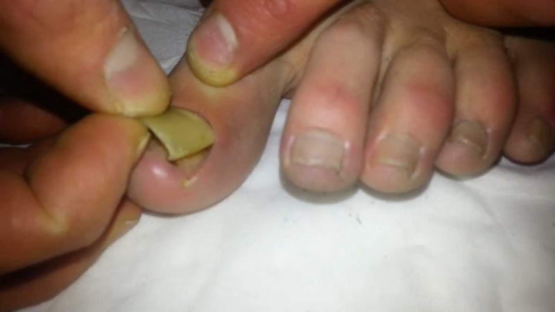 Перед процедурой тщательно распарьте ноги в теплой воде с добавлением соли или соды. Это поможет размягчить ноготь и облегчит его удаление.