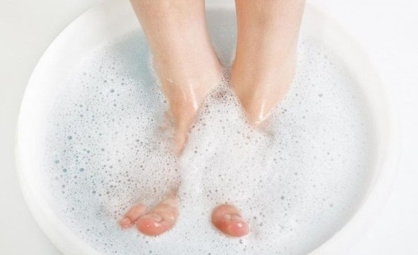 - Погружайте ноги в смесь на 10-15 минут.