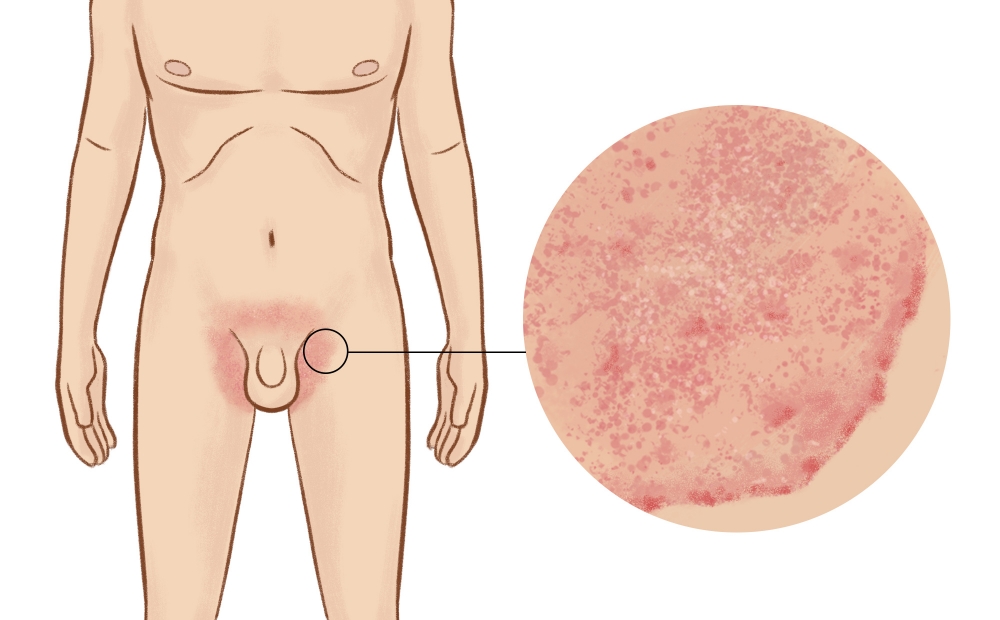 Как выглядит паховый грибок у мужчин?