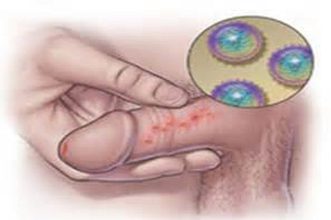 На начальной стадии генитального герпеса кожа полового органа покрывается пузырьками, содержащими прозрачную или кровянистую жидкость. Эти образования созревают и вскрываются, после чего на их месте кожа начинает трескаться и шелушиться. Без должного лечения существует риск возникновения воспалительного процесса.