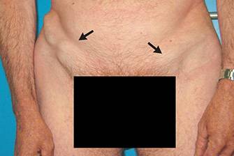 Характерной особенностью таких выпуклостей является их исчезновение в положении лежа, когда шишка вправляется самостоятельно. Пациенты часто отмечают, что боль в нижней части живота ощущается только в вертикальном положении.